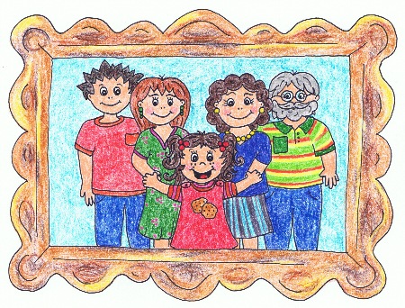 Hinter mir stehen mein Papa, meine Mama, meine Oma und mein Opa und vorne in der Mitte, ja das bin ich, die Mosella!